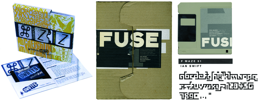 Left: Command Z Font and fanzine package 1993. Right: Fuse No 1 with Maze Font